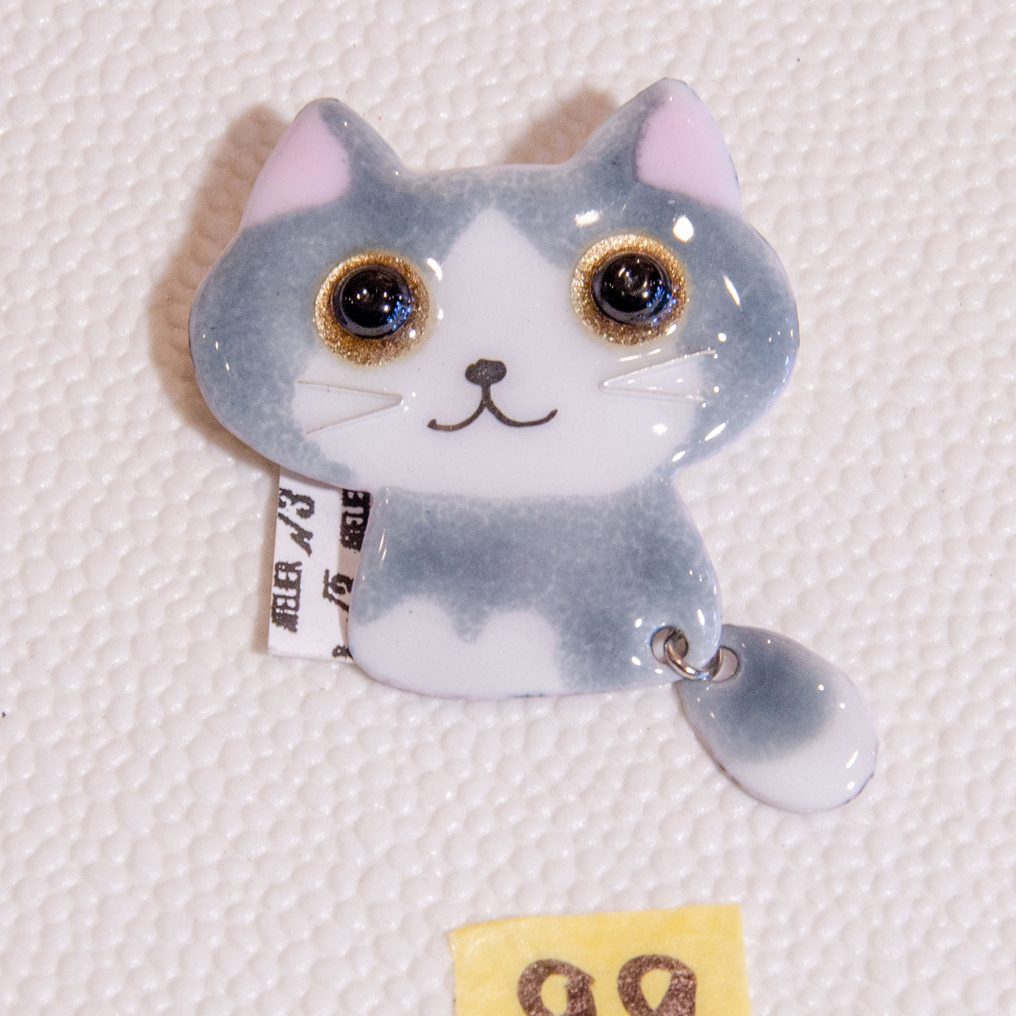 シッポゆれ猫ブローチ(灰) (200422-099)