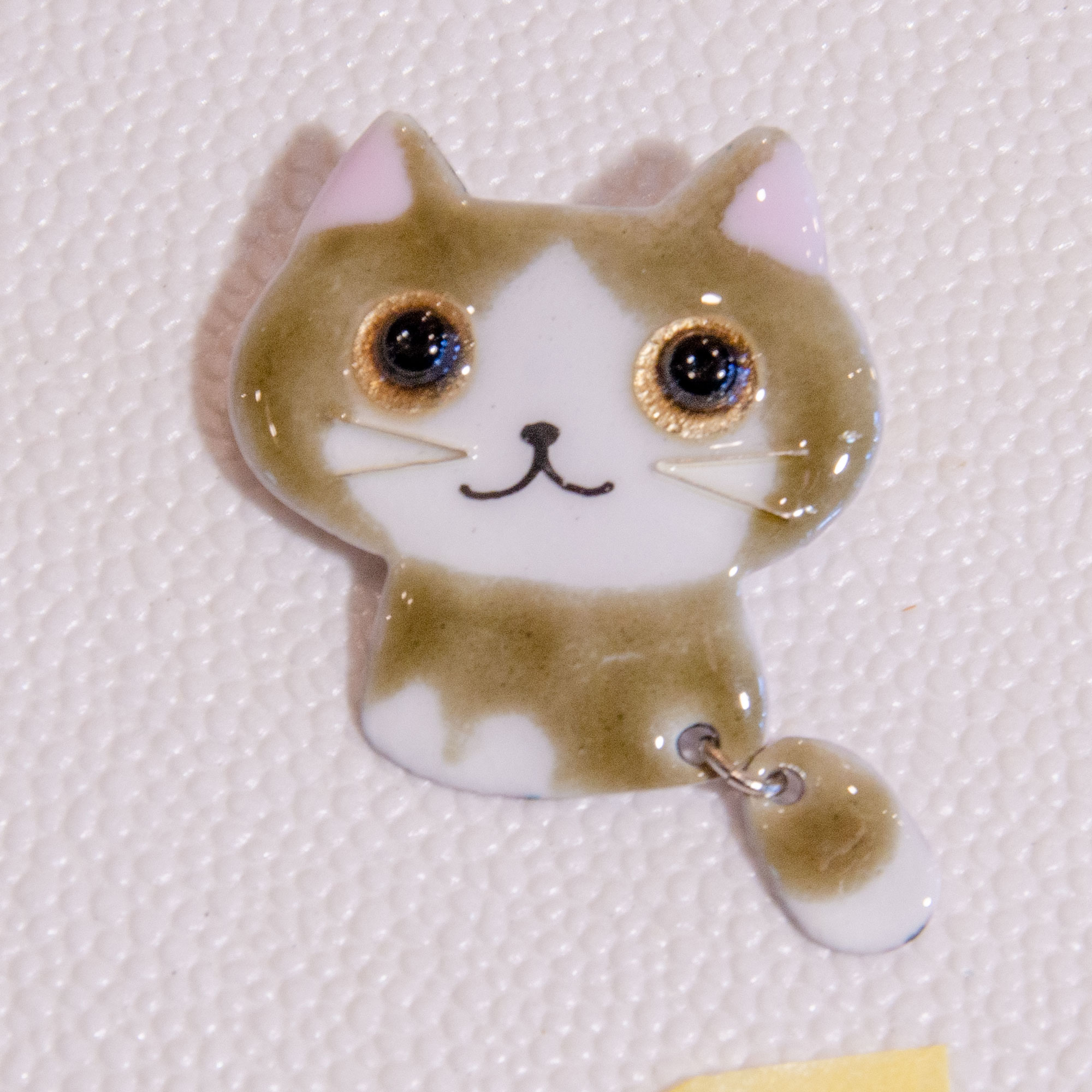 シッポゆれ猫ブローチ(茶) (200422-104)