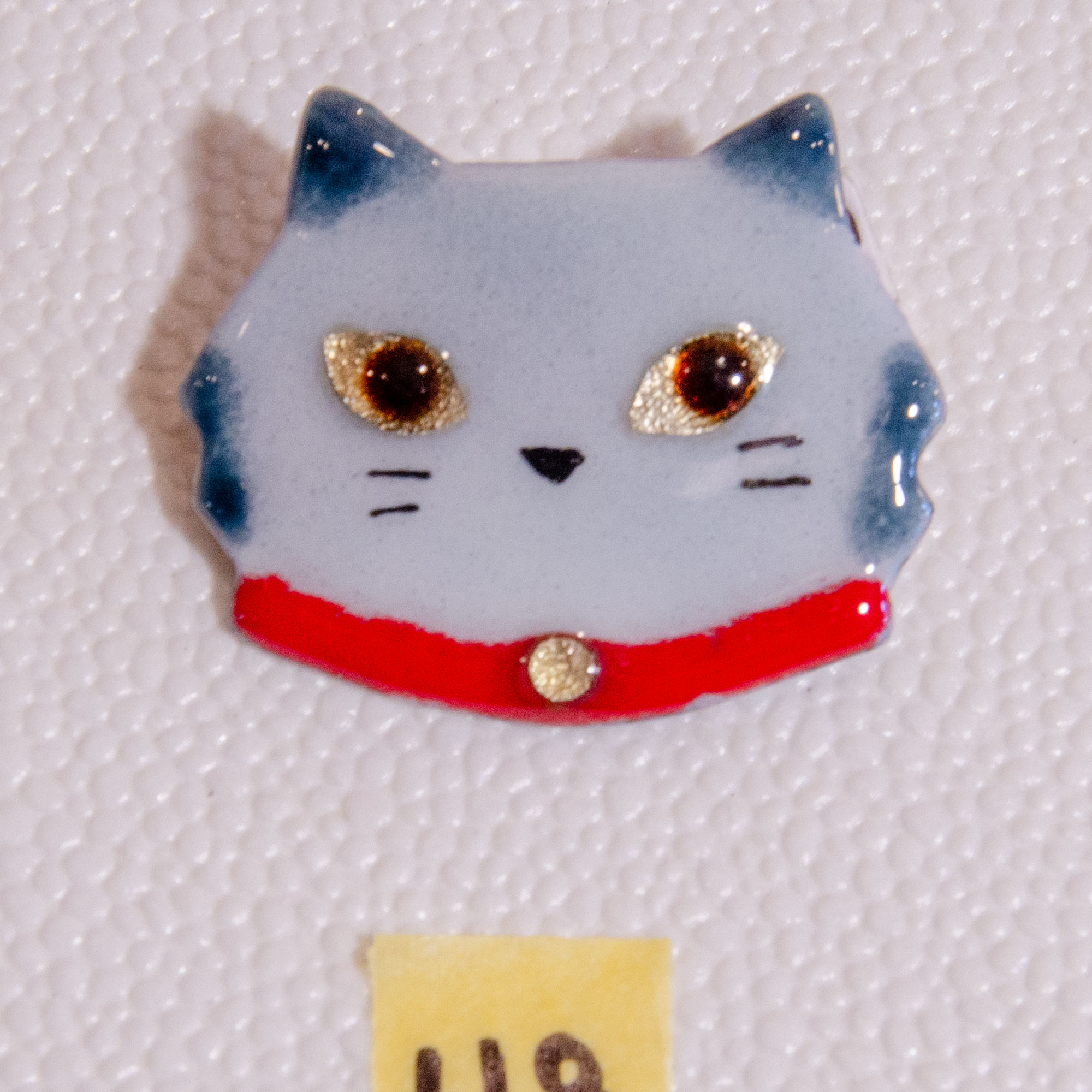 鈴ねこ顔ブローチ(灰) (200422-118)