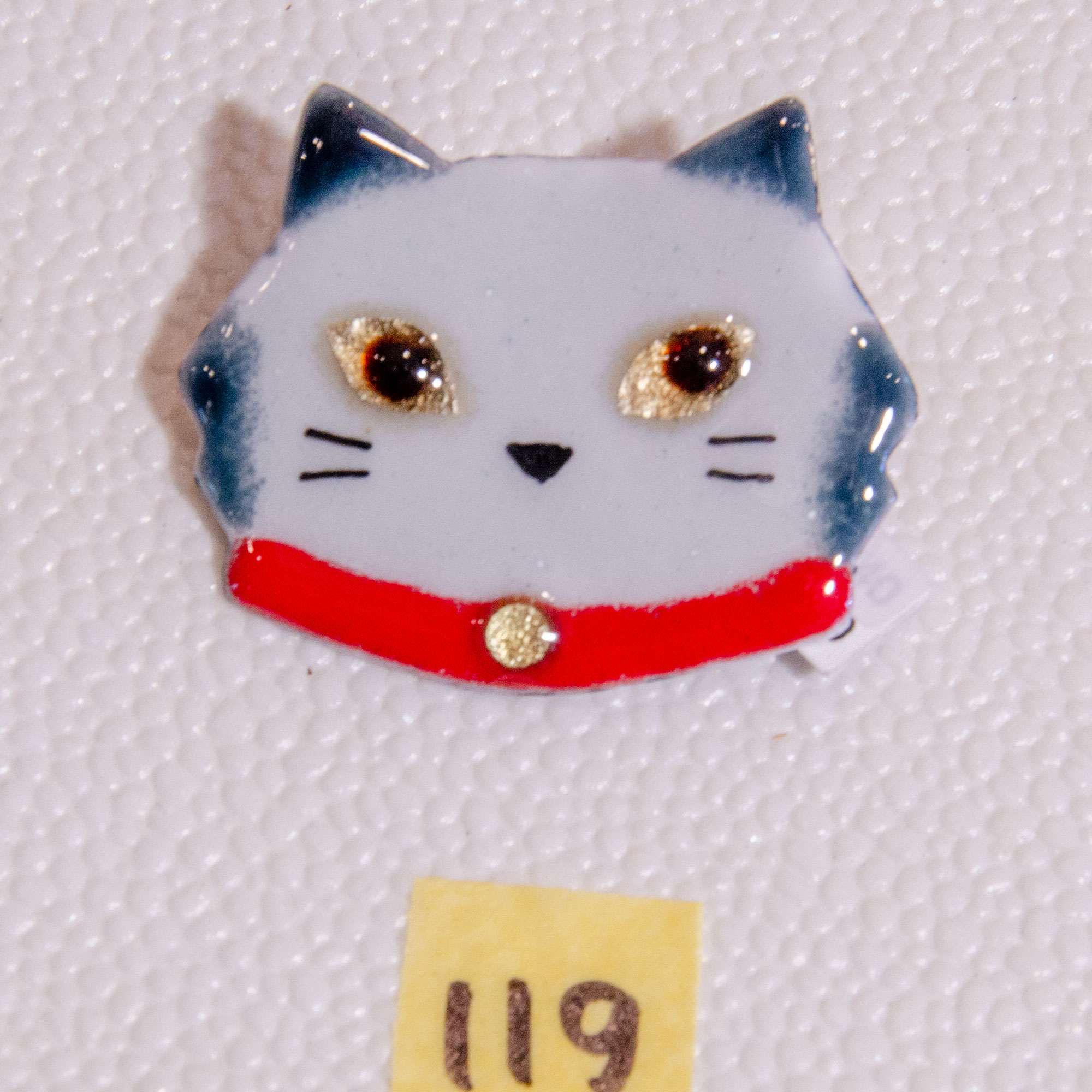 鈴ねこ顔ブローチ(灰) (200422-119)