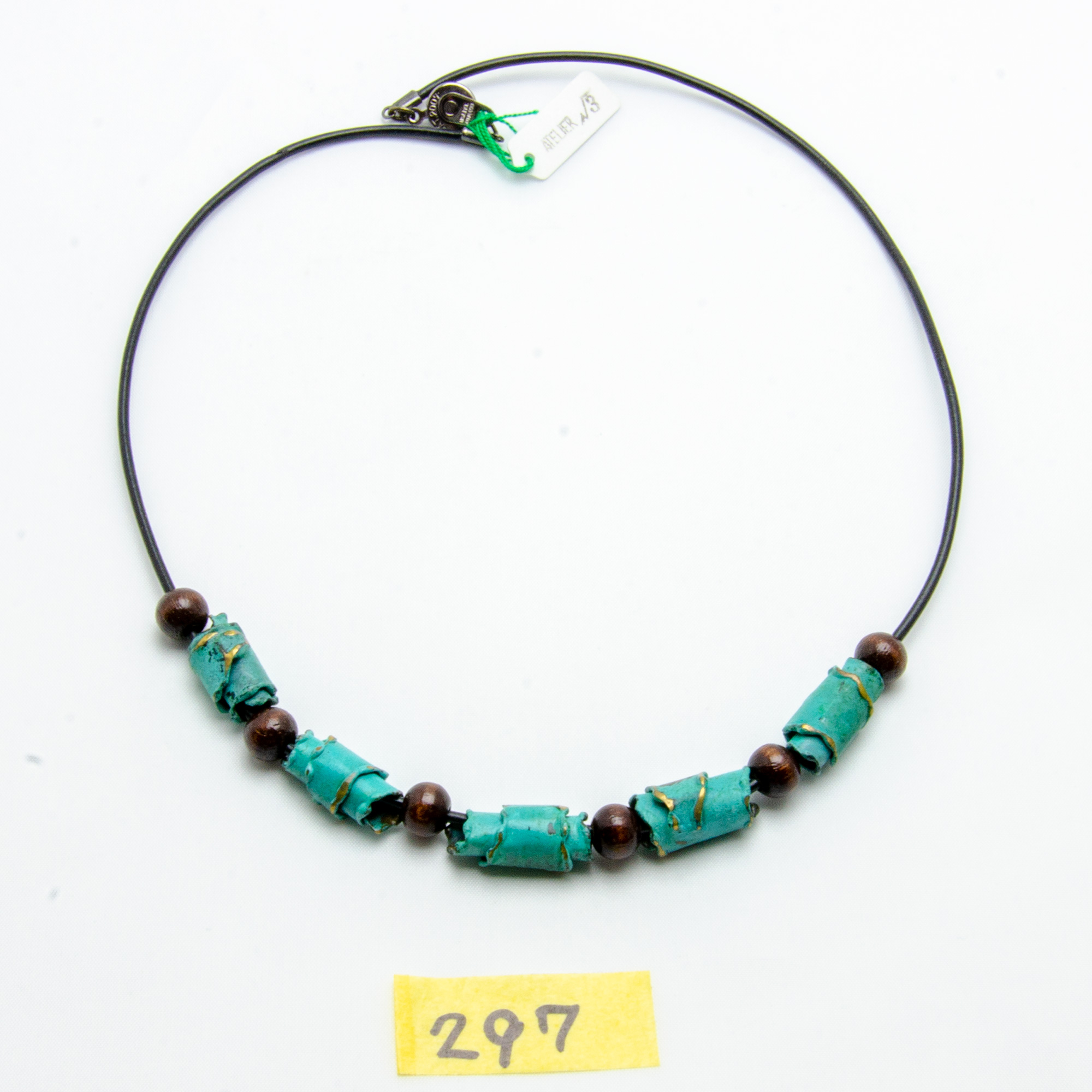 サイズ 紐材質=牛革.長さ約40cm ビーズ材質=木