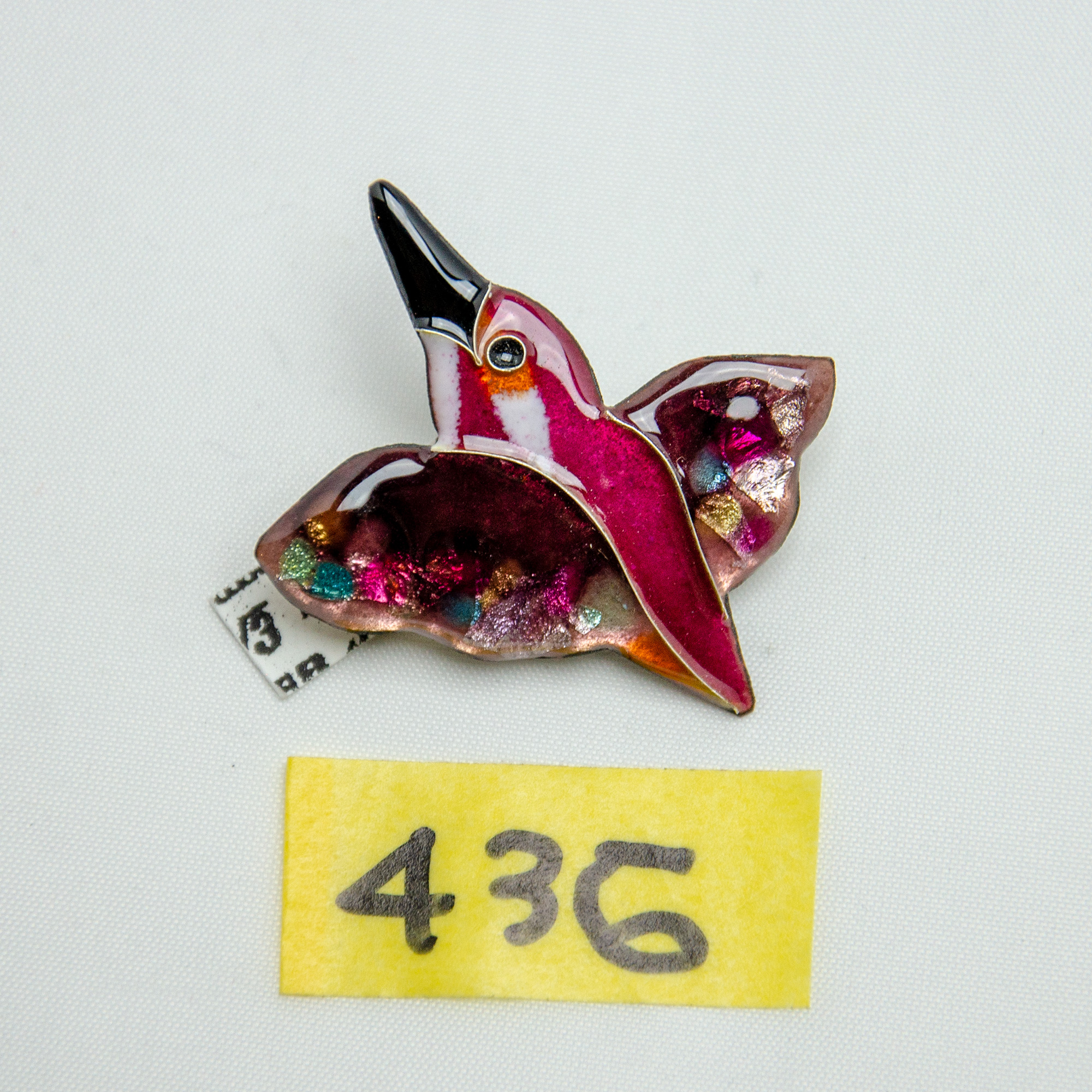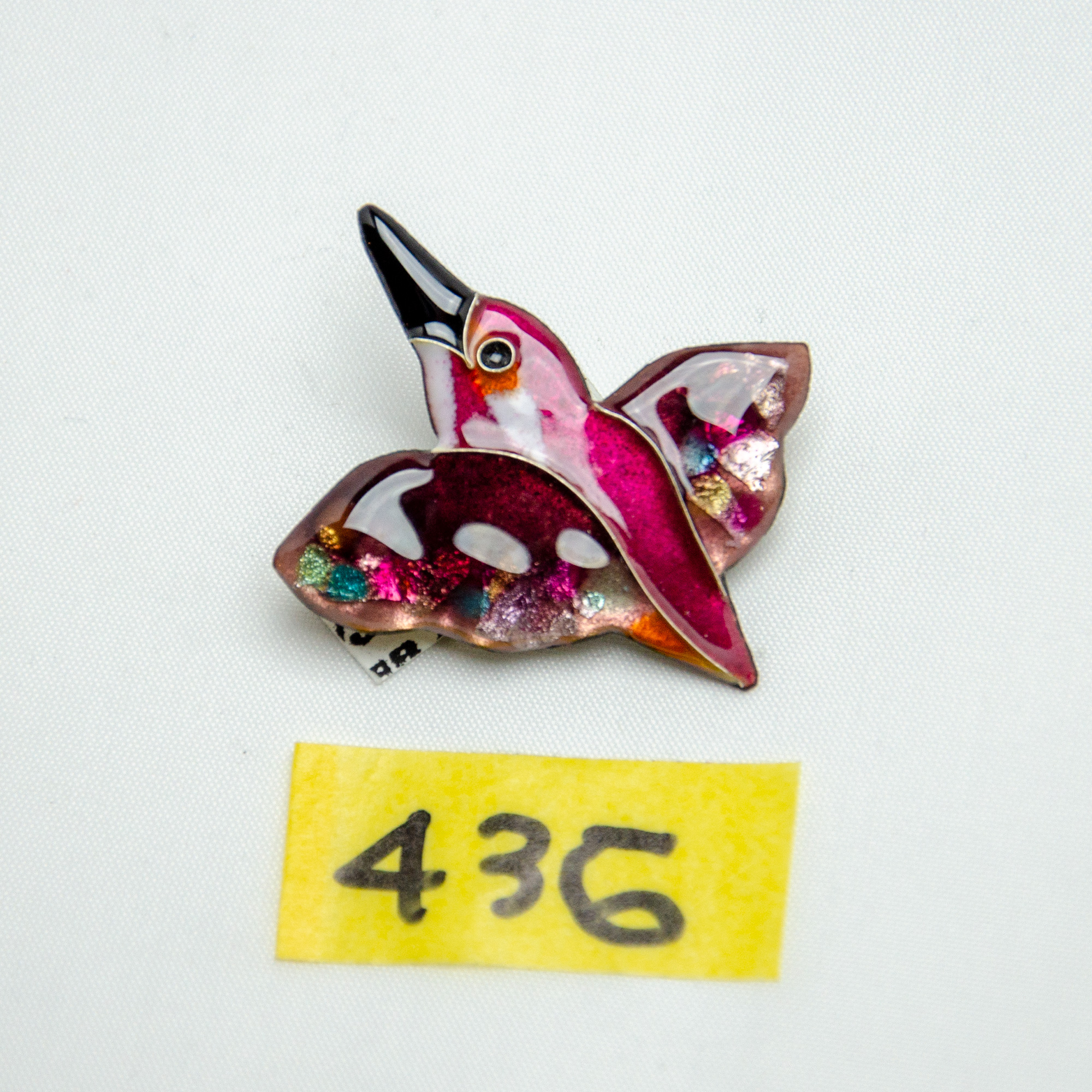 透き通ったガラスの色が美しいカワセミのブローチです。