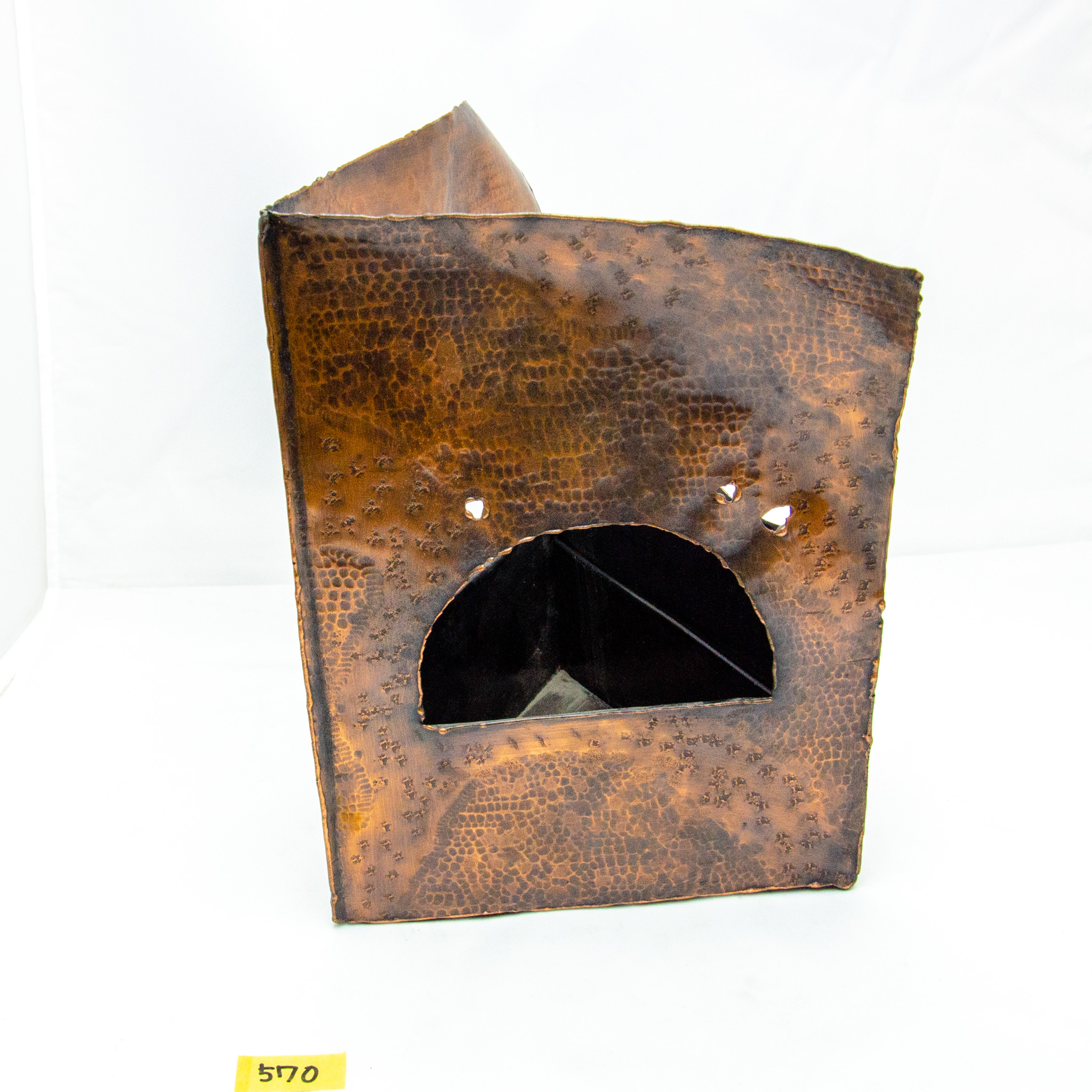 銅板に打ち目を施したユニークな置物です。 中にお花を揃えて飾ったり、LEDライトを仕込んで窓部分から光が漏れるようにするなどいかがでしょうか。