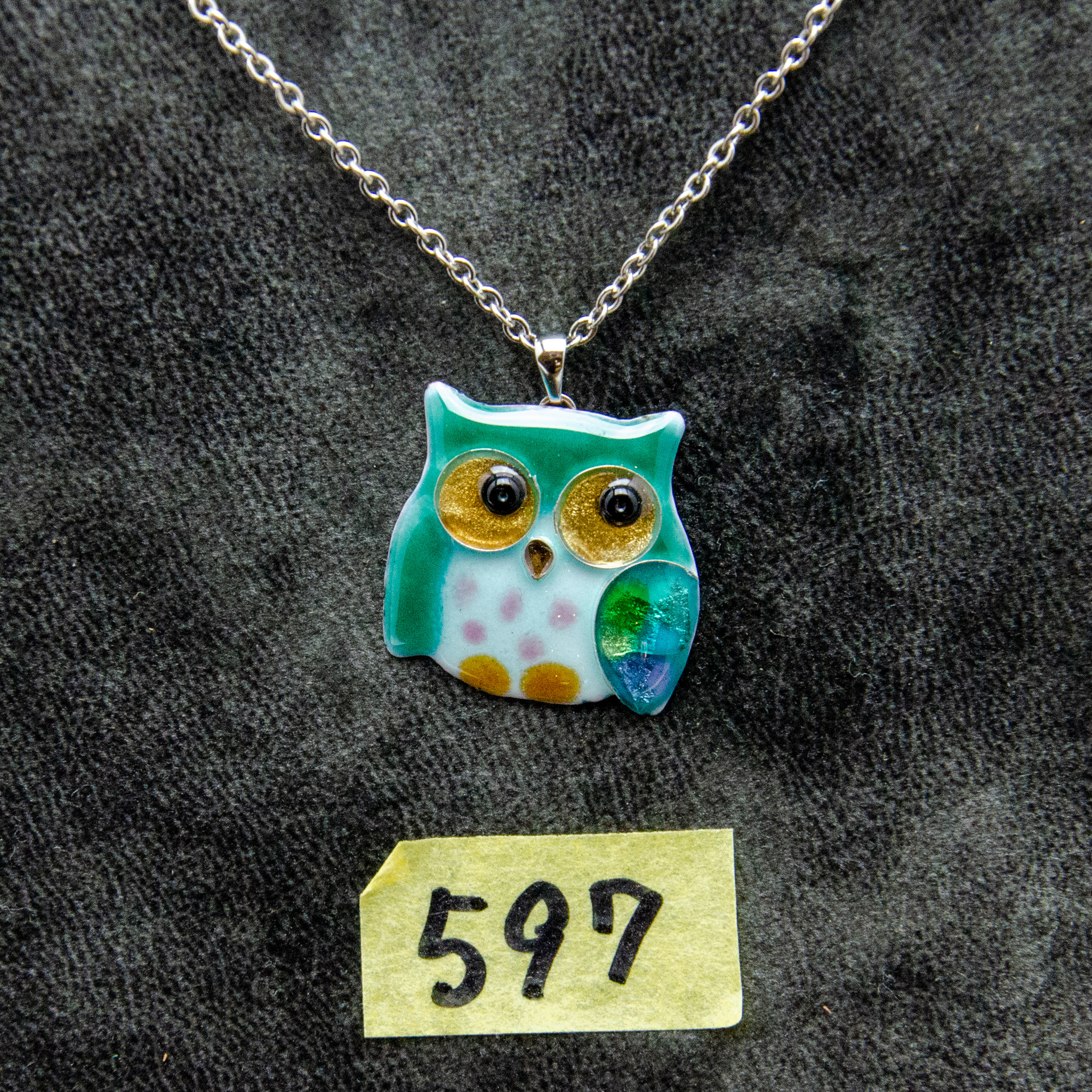 七宝シマフクロウのペンダント(緑) (200422-597)