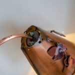 赤ツタがアクセントの置き型ランプです。首の角度は固定されています。