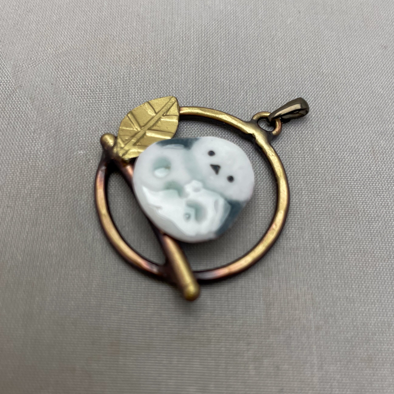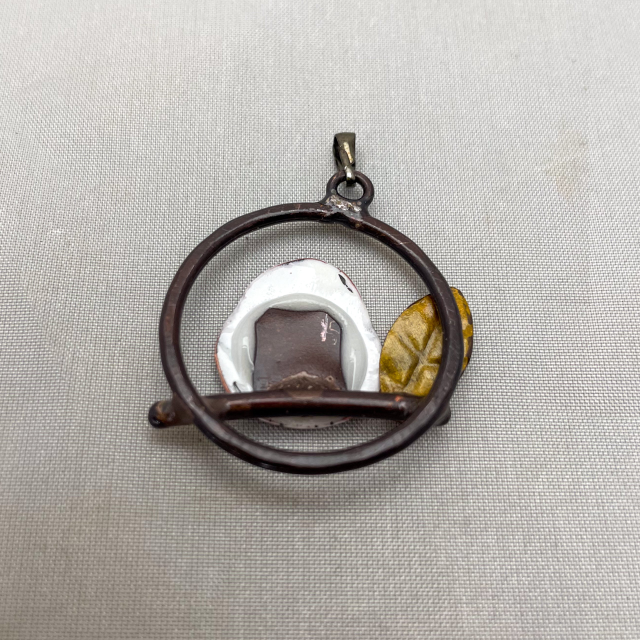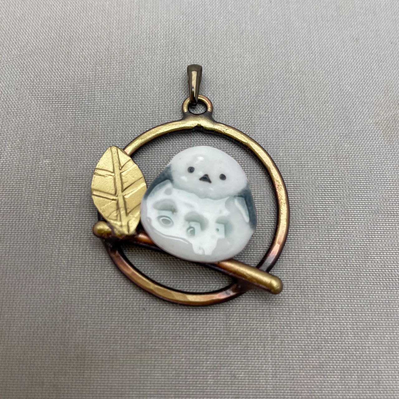 七宝シマエナガと銅・真鍮を組み合わせたアクセサリー