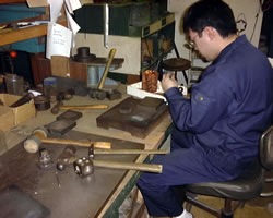 ★彫金—1個1個のパーツを加工し、デザインにそってロー付けや溶接で組み立てます。デザインから製作まで、私どものアトリエのオリジナルとして、自信の持てるものだけを創るよう厳しく心がけています。